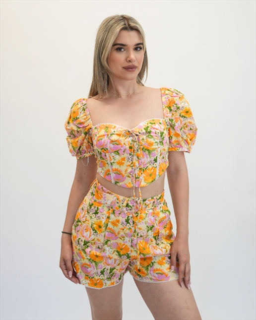GLAMOROUS SET FLORAL CROP TOP SHORT CK7817