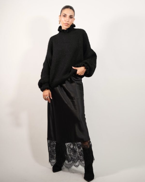 SATIN MAXI SKIRT WITH LACE 4169