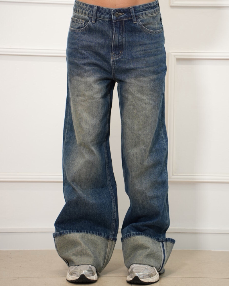 BAGGY FOLDED RIPPED MID-WAIST JEAN 7369