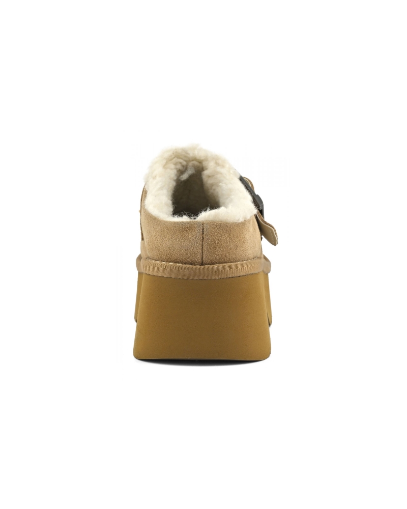 The suede clog in its most glamorous version features a platform sole and an elegant metal buckle at the top of the upper. Long floral-print chiffon dresses or bootcut trousers lend a hippy touch to this style, which nods to the Coachella style, beloved by women of all ages.