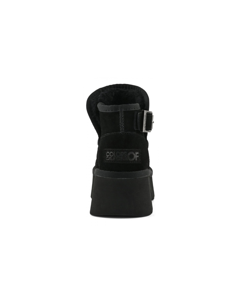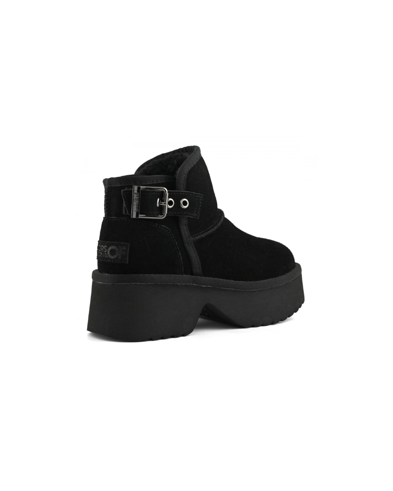The platform sole and metal buckle closure at the ankle give this suede ankle boot a bold, rock-and-roll touch. Perfect for dark souls with a bold style, it complements the look with a denim jumpsuit or an all-black leather look.