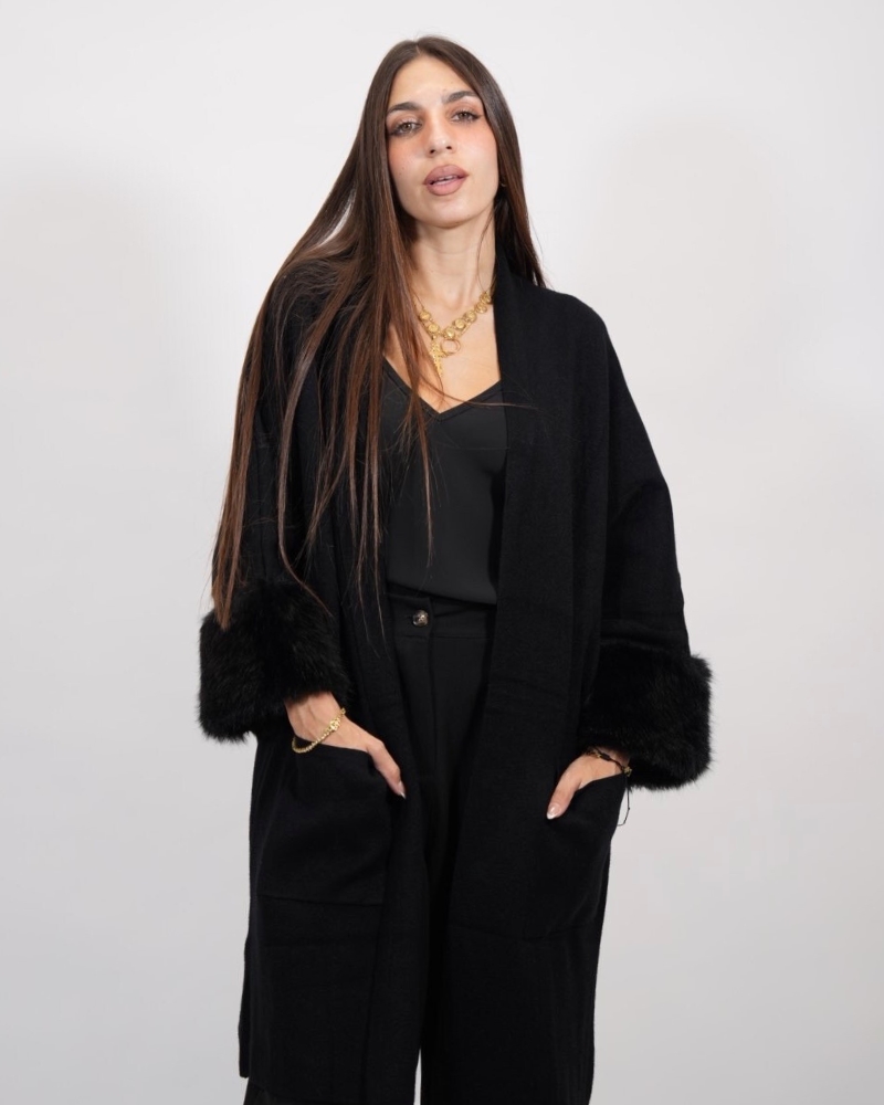 LONG CARDIGAN WITH FUR 7009