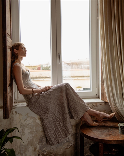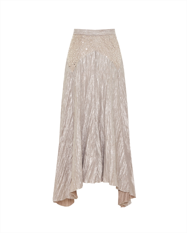 ASYMMETRIC PLEATED PEARLBEADED EMBELLISHED