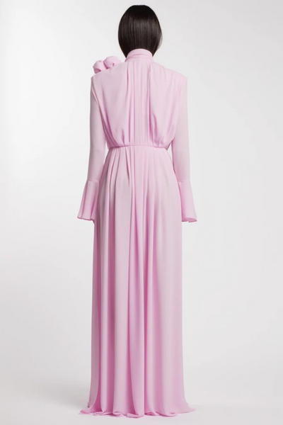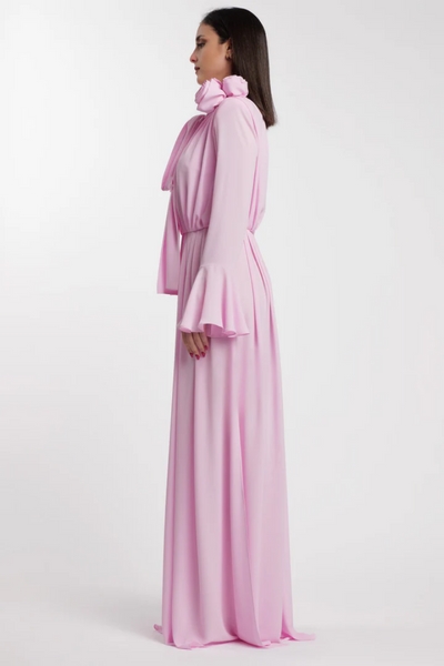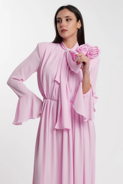 Designed in light and romantic chiffon fabric. The high waist and skirt flatter the figure, while the long sleeve and adjustable bow at the neck add a touch of sophistication and elegance.