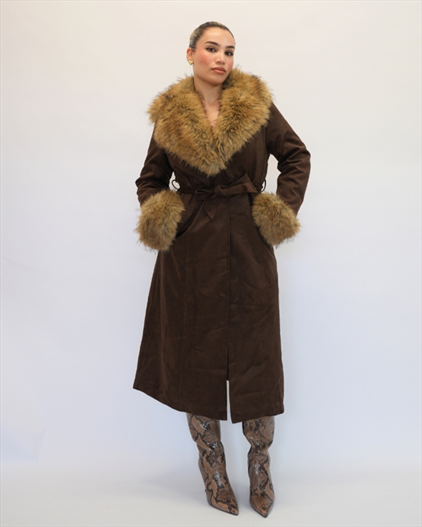 SUEDE MAXI COAT WITH FUR 30102